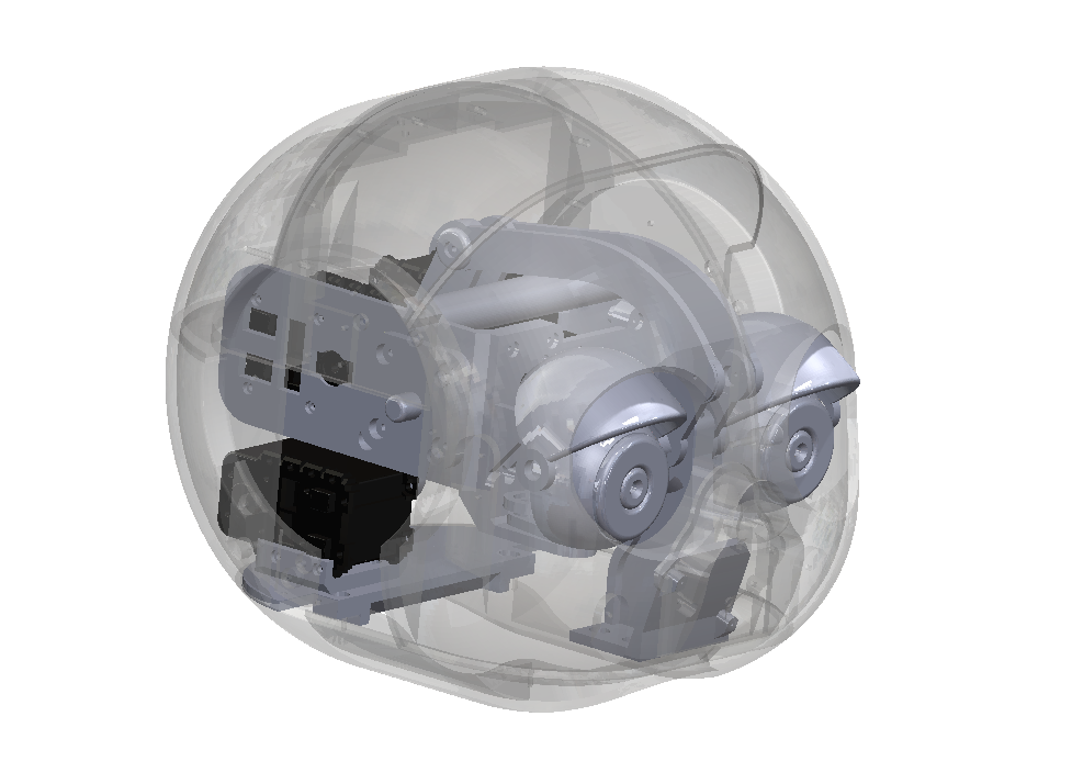 - 2 curved links are attached to the eye lids to individually move them with seperate motors.